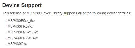 我正在从事一个使用TI的微控制器系列MSP430FR5994的项目。 我们需要为此特定的添加驱动程序库,其中此代码使用MSP430FR5969退出,而此控制器的库存在。 现在我们有了一个新的控制器,即MSP430FR5994。