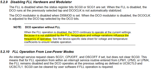 初始化时,我们使用FLL将DCO校准为20MHz,以32kHz晶体作为源。 此校准成功,之后我们禁用FLL。