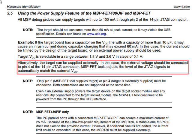 部件号:MSP430FR5992 我的EE正在设计我们的5992 MSP,以运行W ü@ 2.5 VDC。 我知道我可以断开TI FET提供的3.3 VCC电源,而是从本地PS为SDK (或我的自定义目标)供电。