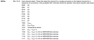 1.关于ADC10CTL1[15:12]INCHx,《家庭用户指南》中指出,A12-A15只能用于MSP430F22xx器件。 但是,40引脚QFN封装也具有A12-A15引脚。 他们如何设置这些PIN?