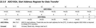 2.在Family User's Guide (系列用户指南 )中,ADC10DTC0[0]ADC10FETCH说明:此位通常应重置。 这是否意味着此位应始终保持0? 如果不是,这意味着什么?为什么是位(RW)?