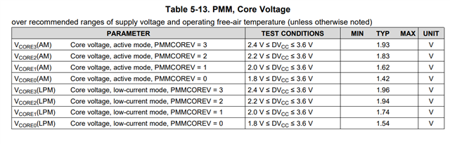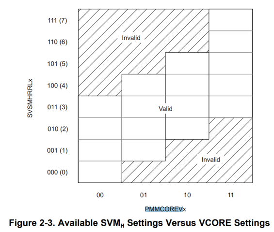 顺便说一下、当 SVSMHRRL 设置 为6或7时、PMMCOREVx 应设置为11、这将把内核电压设置为1.93V。 可以在下图中看到它。