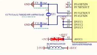 我们正在设计采用 ESI 和 MSP430FR5989的水表。 我们有一些问题、需要检查所有问题、因此我们的 PCB 上有一个位于 SLAA367、 CC7V-T1A-32.768kHz-9PF-10ppm-TA-QC 上的晶体。 我想知道这个配置是否适合这个晶振和应用。
