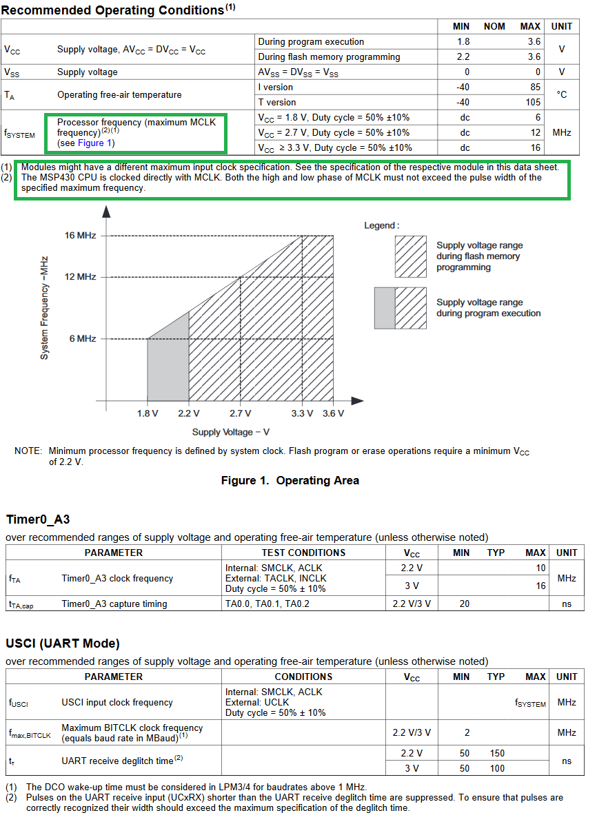 例如、计时器模块可在频率为16MHz 的3.0V 电压下运行、例如、UART 将 fsystem 指定为最大频率。 希望这对您有所帮助。
