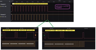最后、我在没有库函数的情况下对 I2C 进行编程-虽然有时会"卡住"、但一切看起来都正常。