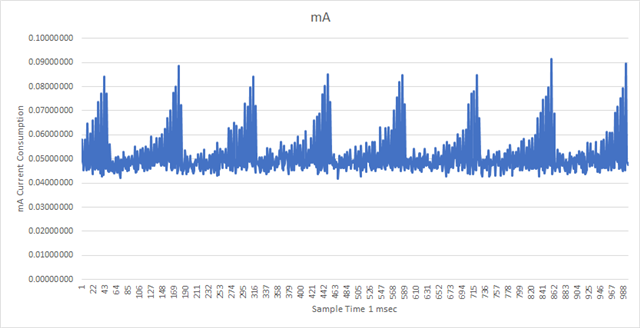 在 LPM3模式下、电流消耗不恒定、但周期性地会出现尖峰、如下所示。  main.c 是附加的源代码。  谢谢你。
