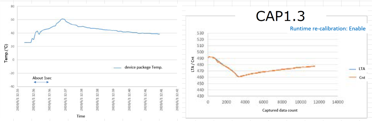 (3)℃瞬时更改为-40 μ s (约0.5s)时、运行时重新校准在此后仅在3通道(CAP1.1/2/3)上不起作用。