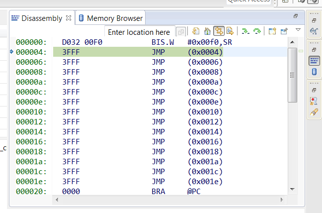 我有一些 TI 提供的代码、我将这些代码移植到我们的 MCU 上。 当 USB 被插入到我们的充电器系统中时、它基本上会处理一组事件。 在大多数情况下、它正常工作、但每次进入一段时间、它都会卡在地址0x0004。 这只是回跳到0x0004。