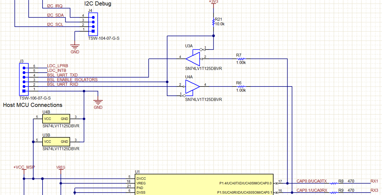 2.为什么 TX 信号上的信号电平仅~1.66V? 它应该与复位信号~3V 相同的 I/O 电平。 此级别错误导致固件升级失败。 如果我为跟踪添加上拉电阻、固件升级将起作用、但它会破坏触摸引脚上 BSL UART 的触摸性能。