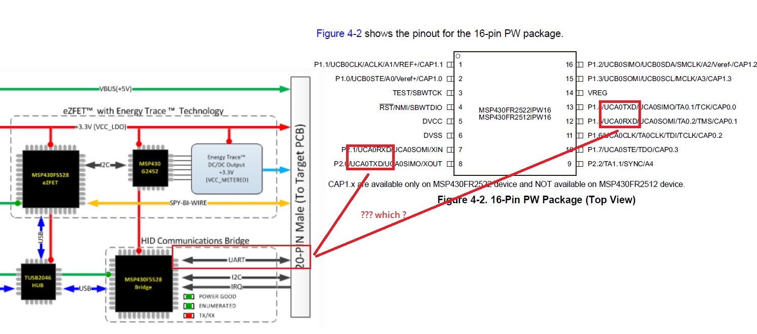 如果我想使用 CAPTIVATE-PGRM 来调整 目标 MSP430FR2522的触控性能、由于 FR2522上有2个 USCI_A0、哪个 USCI_A0应该连接到 CAPTIVATE-PGRM 的 UART?