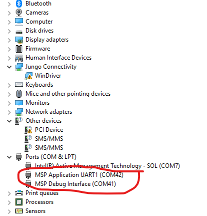 MSP 器件连接到 PC (64位)时、器件管理器中端口部分的 dosent 更新调试接口。