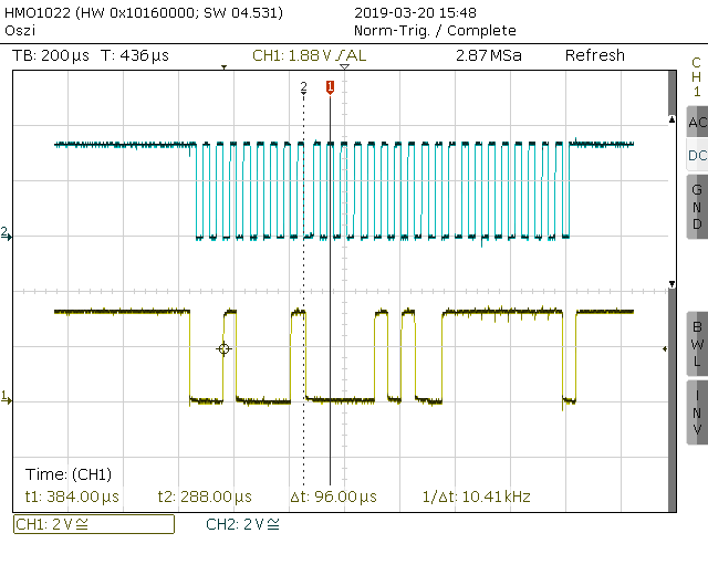 对于从器件、我已将时钟从8MHz 更改为1MHz。 我可以使用示波器捕获 SDA 和 SCL。