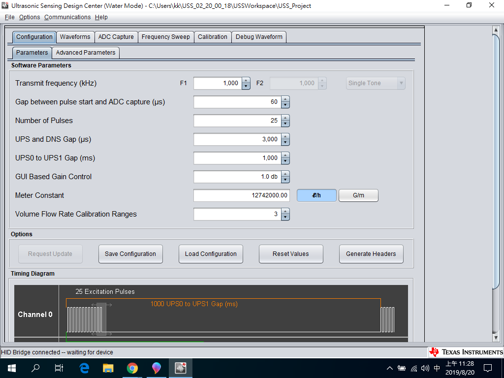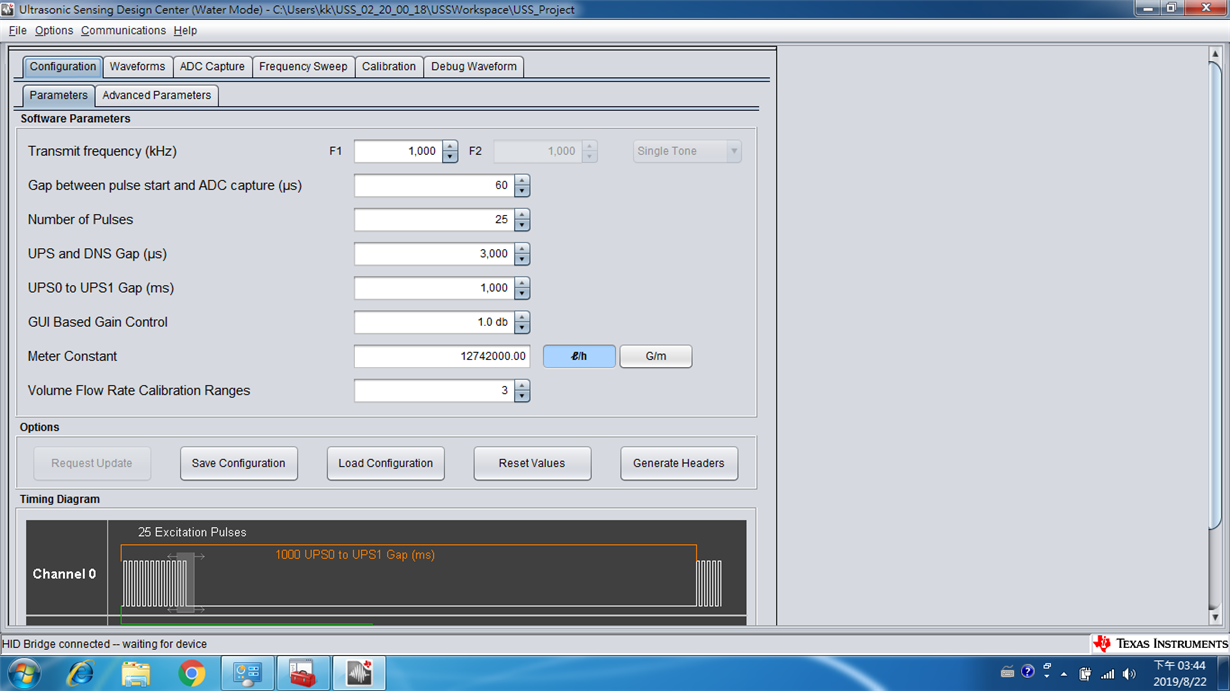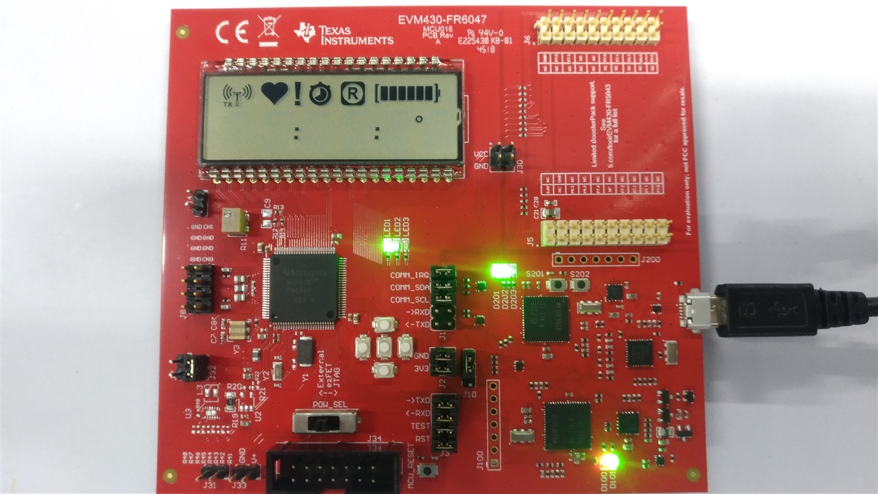 我的客户尝试将 EVM430FR6047连接到笔记本电脑,GUI 显示“HID 桥接已连接--正在等待设备”。 硬件设置为附加照片