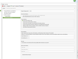 我注意到、在"Debug Configurations Target"选项卡中还有一个额外的部分"ARM Flash Settings"、其中包含"Erase Options"。 目前只有主存储器被擦除。 本节是否实际应用于此器件(因为它没有闪存但只有 FRAM)?