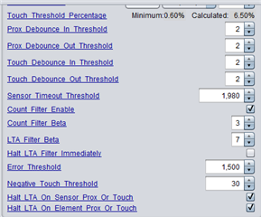我将 MSP430FR266用于我们的电容式触控键盘应用、该应用具有使用互电容的16个触控按钮。 目前,当用户轻轻地触摸按键时,触摸效果非常好,但只要触摸很硬,就像按下物理按钮一样,触摸就不会被检测到,它会挂起几秒钟。 我正在附加我的 captouch 配置文件。