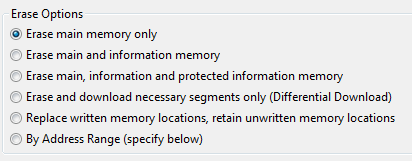对于您当前的情况、您是否看到首次编程后立即擦除 INFOA 的问题? 如果是、您如何对器件进行编程(CCS 或 IAR IDE、MSP-FLASHER、MSP-GANG、Uniflash、FET-PRO430等工具)? 例如、在 CCS 中、有单独的选项可擦除信息存储器、同时仍保持受保护的信息存储器(INFOA)、而其他选项则可擦除两者。