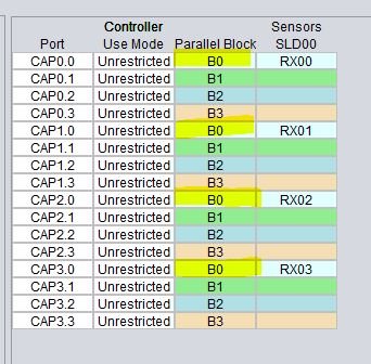 我想指出的是、您将能够在两种配置(CAP0.0、CAP1.0、CAP2.0、CAP3.0或 CAP0.0、 CAP0.1、CAP0.2、CAP0.3)。 但是、如果您从每个块(CAP0.0、CAP1.0、CAP2.0、CAP3.0)中实现一个引脚(如自动分配所做的那样)、您将在灵敏度、线性度和响应时间方面获得更好的性能。