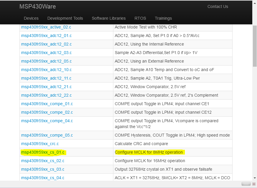 对于代码示例、您可以通过在 CCS 中的 Resource Explorer 中进行搜索在 MSP430Ware 中找到该示例。 对于 MSP430FR5969、请查看'msp430fr59xx_cs_01.c'代码示例。 描述为"为8MHz 运行配置 MCLK "。
