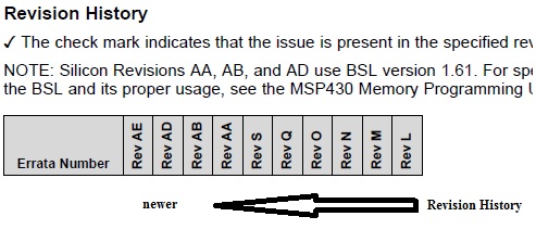 器件型号:MSP430F133 SLAZ134G www.ti.com/lit/pdf/slaz134中的实际"勘误表编号"方案 已更改、对于查找 修订历史记录的用户而言、这种情况令人困惑。