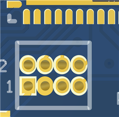 3D 视图。 之前 的公司的 JTAG 引脚间距为0.031英寸、相距为2个45英寸0.039英寸、因此它们很紧。
