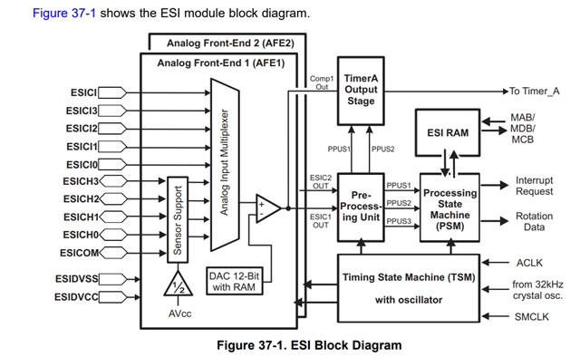TSM 是顺序状态机、它在 ESITSMx 寄存器之间循环、并自动控制模拟前端和传感器激励、而无需 CPU 干预。 您可以在 用户指南的 P974中找到 TSM 的说明