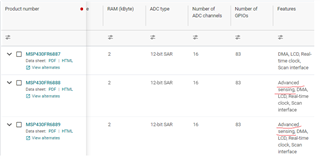 在所有产品列表中、某些 MSP430具有高级传感功能。