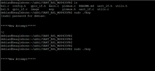 • 然后、我 使用本文档中提到的 pscp (putty)命令将 UART_BSL_MSP430FR 文件传输到 Beagle Bone 电路板。