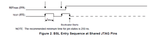 你是对的。 复位和测试引脚用于调用 BSL。 我将捕获这2条线的波形、并让您知道。