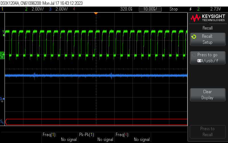 连续时钟告诉我主器件(FR59941)要么卡在循环写入中、要么读取所有零、这会导致您的软件出现问题。