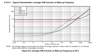 2.此图显示了以特定频率唤醒器件时的平均电流消耗。 例如、如果您以10次、1秒唤醒器件、则平均电流消耗相当于 x 轴上的10Hz 线。