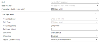 我正在开发一个项目、以在 CC2340R5 (用作发送器)和 CC2500 (用作接收器)之间建立通信、这些器件在具有专有模式、250kbps 和 MSK 调制的2.4GHz 频段中运行。