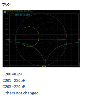 我想知道如何调整天线匹配电路、从数据表可以看出、有两种方法可以调整阻抗、一种是仅使用电容器、另一种是使用电容器和电感器。 我尝试使用这种不同的方法来获得50Ω,、但读数距离仅为7mm。