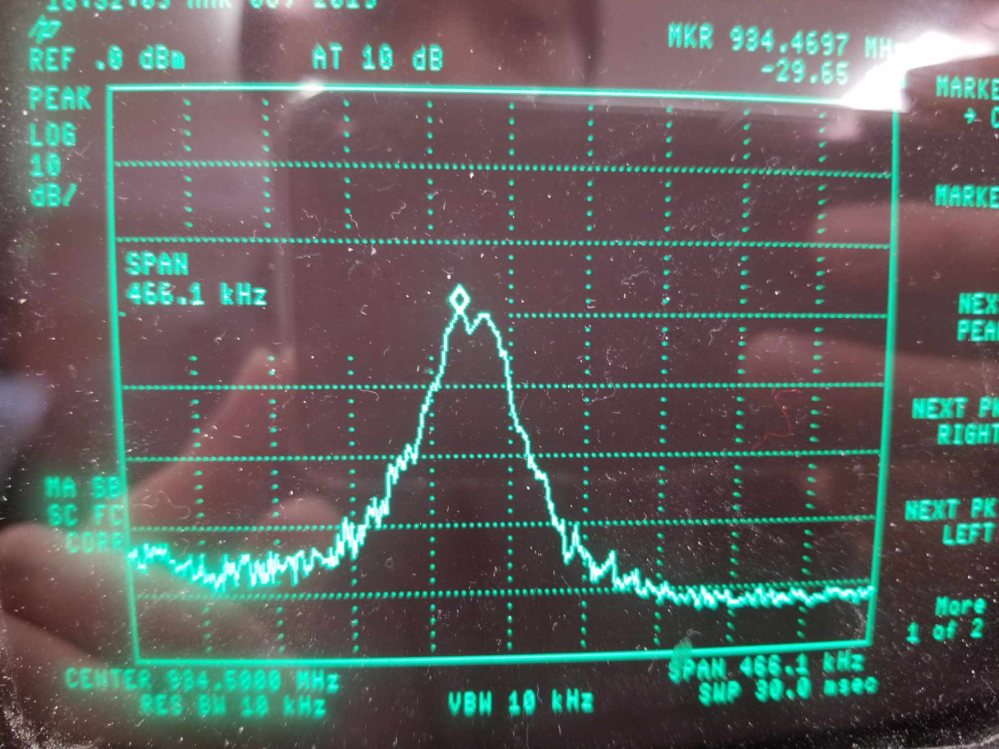 低于1GHz 无线电、CC1101、将以恶意频率发射。  这是过去6个月的一个问题。  旧产品没有此问题。  我从早期产品中查看了496个系统、没有任何 CC1101问题。  但现在、我们的故障率约为5.6%。  随附的两个视频最好地显示了问题。  这些视频是使用特殊的非生产固件制作的、该固件可在 200KHz 通道中扫描903MHz 至926.8MHz 的整个频率范围。  InBandTX 文件是从已知良好的系统生成的。  OutofBandTX 文件是在系统出现故障时生成的。  当传输频率扫描到范围的最高端时、突然出现传输尖峰。
