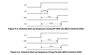 ZHCS904I 指出、对于使用切片选择的 SPI 通信、SS 上拉和 EN 启用之间存在4ms 的延迟。