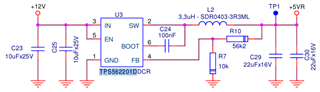 我正在工程中使用 TPS562201来生成+5V 电压、但 IC 燃烧在大多数 PCB 中、而在少数 PCB 中、IC 不燃烧。