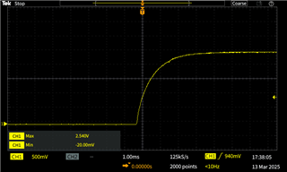 我已经使用 A 重新完成了示波器测量 时间刻度为1ms/div 、结果如下: