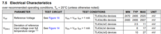 例如、对于 TL431LIBQ 器件、整个温度范围内的最小 Vref 为2483mV - 27mV。