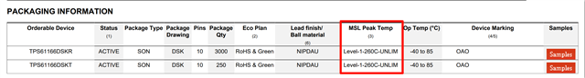 - 潮湿敏感度级别(MSL)