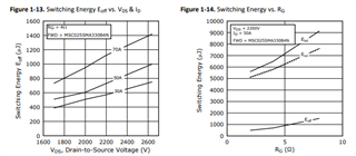您是指 MSC025SMA330B4N 漏极电流的16A? 从 SiC FET 的数据表中有一张图、该图显示了50A 漏极电流下的预期开关损耗与栅极驱动电阻之间的关系。 16A 开关损耗将几分接近这些50A 值的16/50: