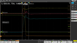 栅极驱动器输出电流并不是以这种方式工作的。 下面是针对 C3M0015065D (一种类似的 SiC FET)测得的 ID = 75A、600V 开关波形 I。