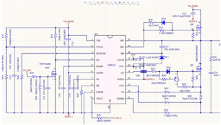 以下 LM5116电路、Vin=50V、Vo=3.3V、L=4.7uH、Cout=150uH、VCCX=12V、在 Vin 就绪、μ s 后启用器件、但客户发现 LM5116将同时输出高侧和低侧驱动器信号、从而导致击穿、μ H、LM5116也会损坏。