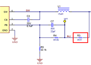 在 EVM 中、在 FB 引脚和下部反馈电阻器之间放置一个49.9Ω 电阻器。