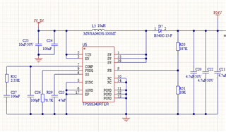 我使用 TPS55340将5V 的输入电压转换为24V 的输出电压、并且在发生过载时会出现嗡嗡声的噪声、这在正常工作期间不会出现问题。 是否有办法阻止振铃?