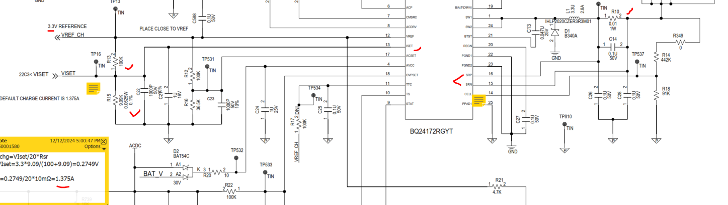 根据下面的原理图、根据计算公式电流、设计充电为1.375A、但实际测量值约为1.5A。