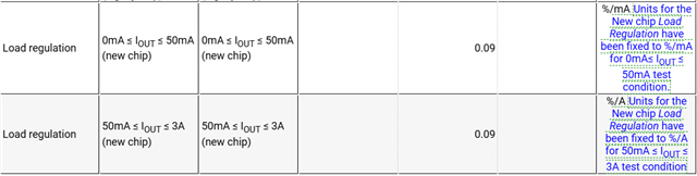请告诉我新芯片的正确负载调整率。