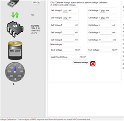 我尝试在76942EVM 上运行电压校准、得到左下角的 MAC 错误。 您能帮助我清除这个错误吗? 我查阅了有关 bqstudio 电压校准的应用手册来解释该错误、但找不到任何更深入说明的内容。