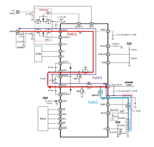 场景1:当 BQ IC 未配置为寄存器(出厂模式、MCU 未通电)时、适配器已连接、电池已连接、电池已通过 Path1+Path2供电? 对吗? 充电曲线应该是 IC 默认值吗? 对吗?