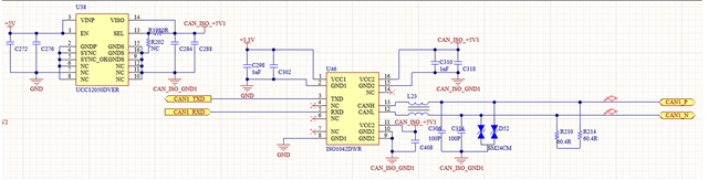 2. 隔离直流/直流转换器并隔离 CAN 电路。