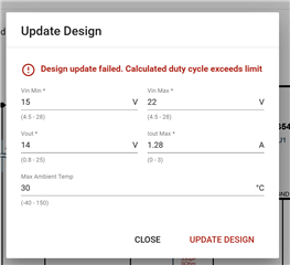我使用 TPS54336A 芯片构建了一个直流/直流转换器。 该电路设计是使用 WEBENCH 工具基于以下规格开发的:输入电压范围为15V 至22V、输出电压为14V、输出电流为1.28A。 我同时使用 TINA 和 LT-Spice 对电路进行了仿真、结果很有前景。