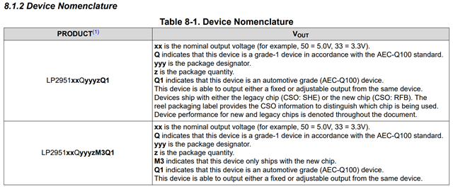 我目前正在分析器件型号为 LP2951-33QDRGR 的 LDO。 数据表中提到了有关旧芯片和新芯片的信息。 我想知道要考虑哪些芯片数据进行分析。